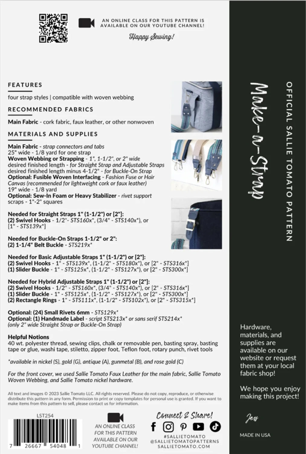 A strap gives your bag, tote or purse flair and functionality! Try using unique woven webbing or strapping to give your creation extra personality. Our Make-a-Strap pattern is a collection of four strap styles so you can choose the look you prefer or for the hardware you have on hand.