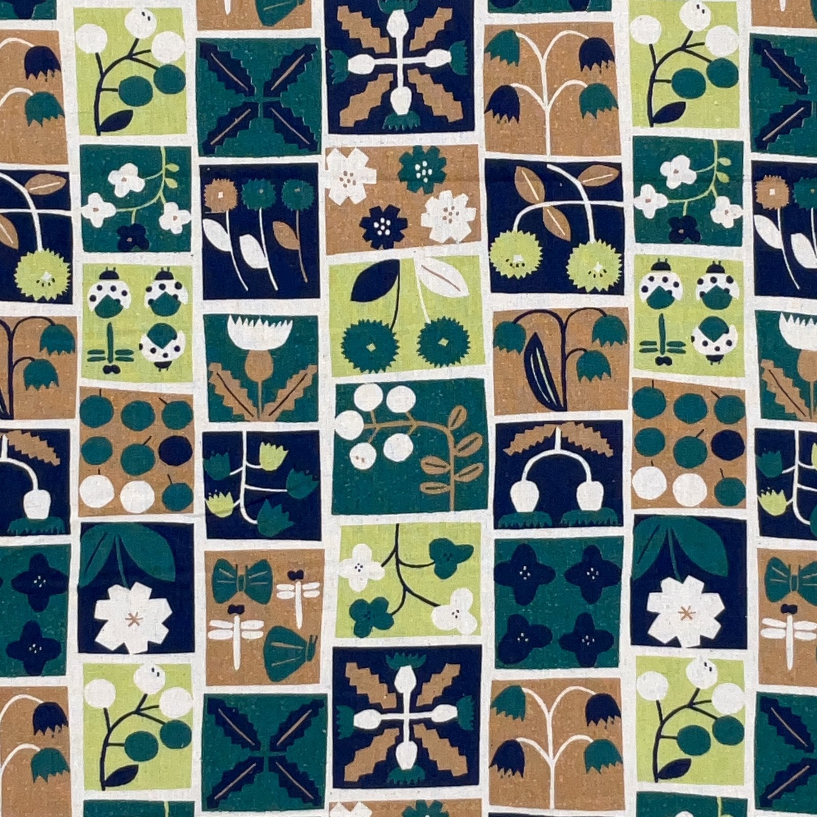 Kokka - Cosmo Patchwork Plants Green Canvas - AP-45901 -1A - Sold by the Half Yard