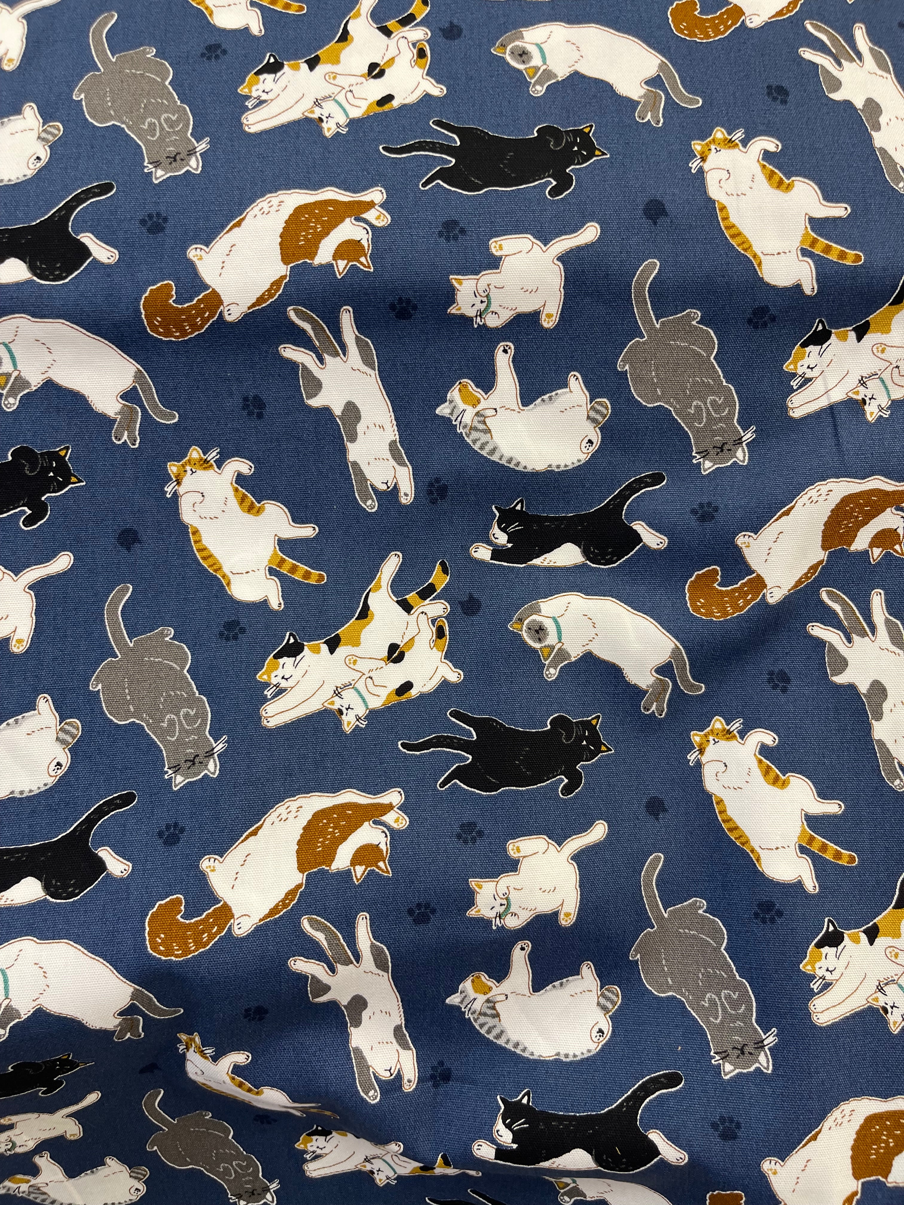 Kokka - Cosmo Oxford Cats on Blue- AP-52903-2E - Sold by the Half Yard