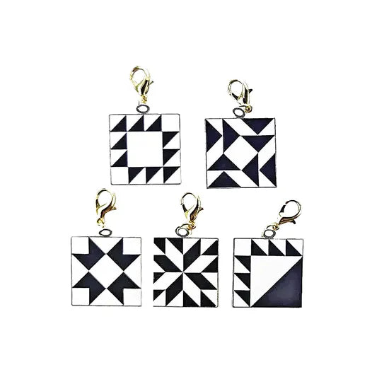 Pouch Club Enamel Zipper Pulls, designed by Chrissy Lux of Sew Lux Fabric for Moda Fabrics, are the perfect finishing touch for your latest project. Package includes a set of five black and white quilt block enamel pulls.