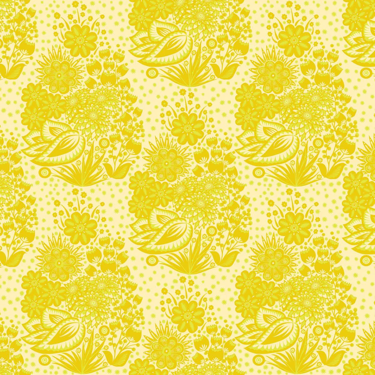 Northcott Fabrics: Overdressed | Anna Maria Textiles | Totem - Yellow (Sold by the Half Yard)
