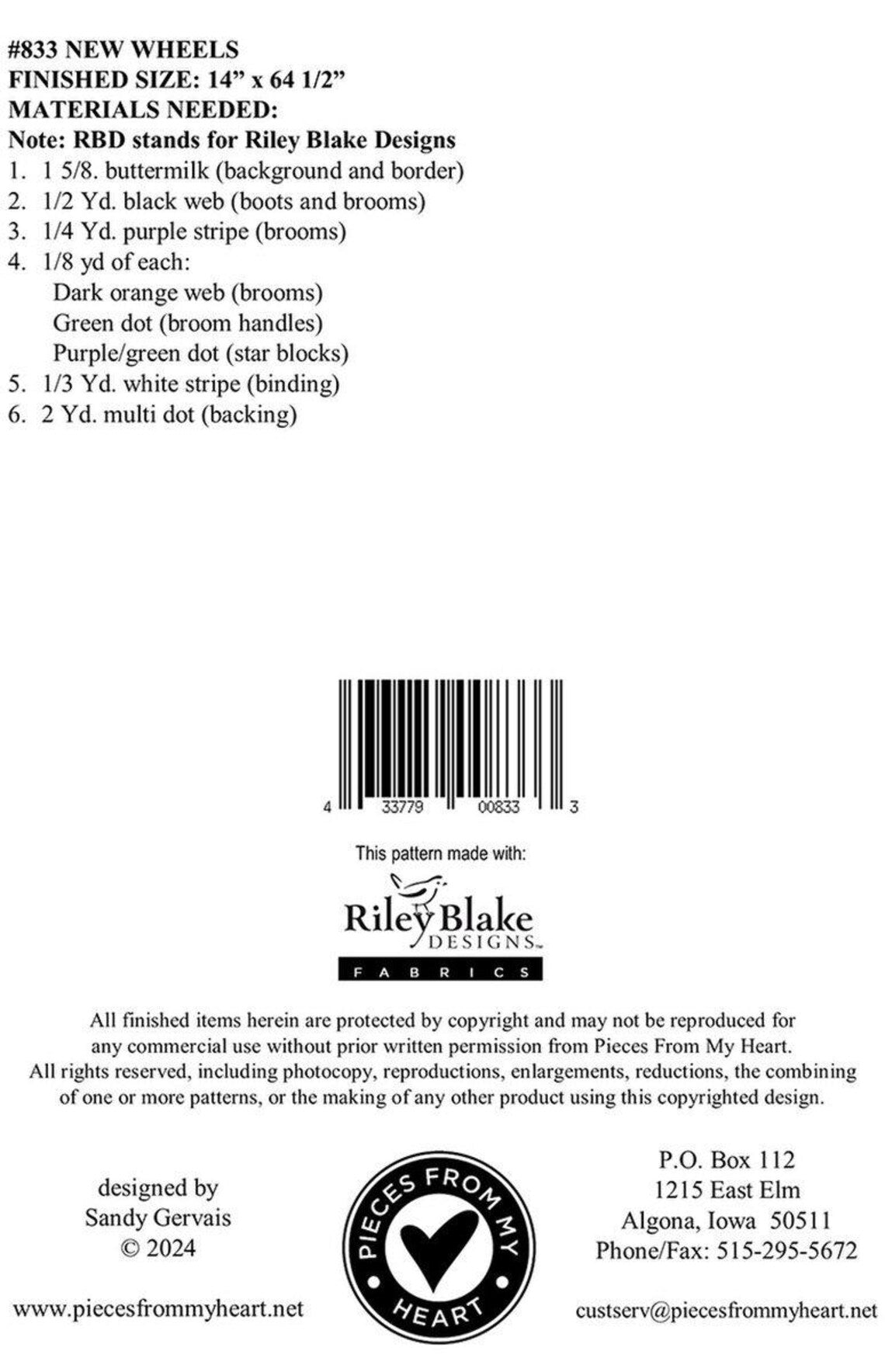 New Wheels Runner Pattern for Riley Blake, Fright This Way Batik Fabric Collection, with Stars, Witches Boots, Brooms