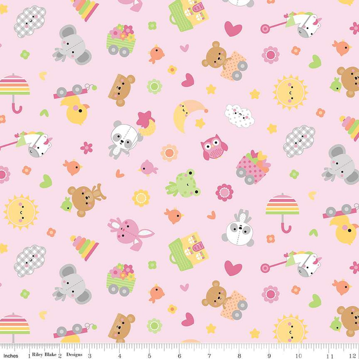 Riley Blake Designs - Designer Flannel - Flannel Bundle Of Joy Toss Pink - F16780-Pink - Sold by the Half Yard