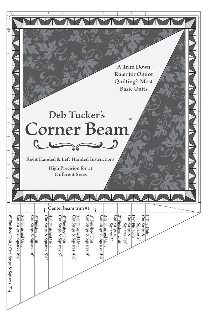 This tool creates a fundamental unit that is sure to add sparkle to your quilt block designs. Although the ruler shape is similar to the V Block, the final unit has two seamlines radiating from a single corner, so the center triangle in the finished unit resembles a beam of light shining out of that corner. Accurate construction has always been challenging until now. With the Corner Beam tool, all the shapes are cut slightly over sized and once sewn, trimmed to extremely precise units with seams perfectly placed for a crisp sharp point every time. Brighten up your blocks by adding Corner Beam to your toolbox today!