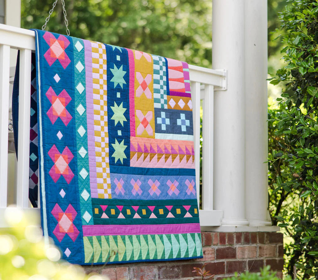 The Ramble Block of the Month is Tara's modern take on a traditional medallion quilt, with each row inspired by the intricate beauty of embroidered ribbon. The result is a vibrant, flowing design that feels timeless and bold.