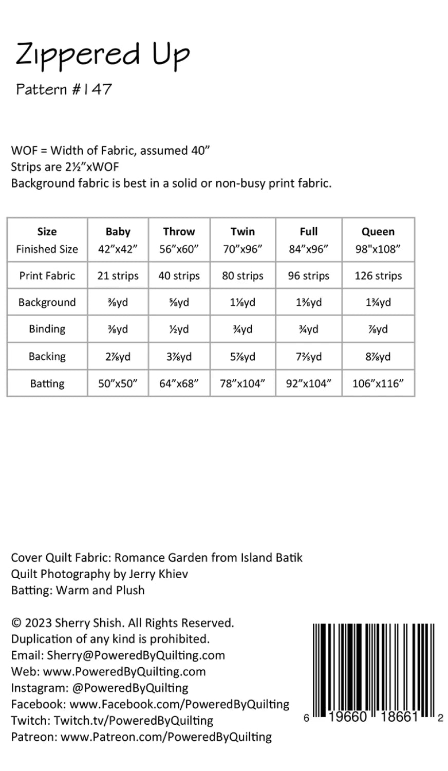 Zippered Up Quilt Pattern by Sheri Shish of Powered by Quilting - PBQ147